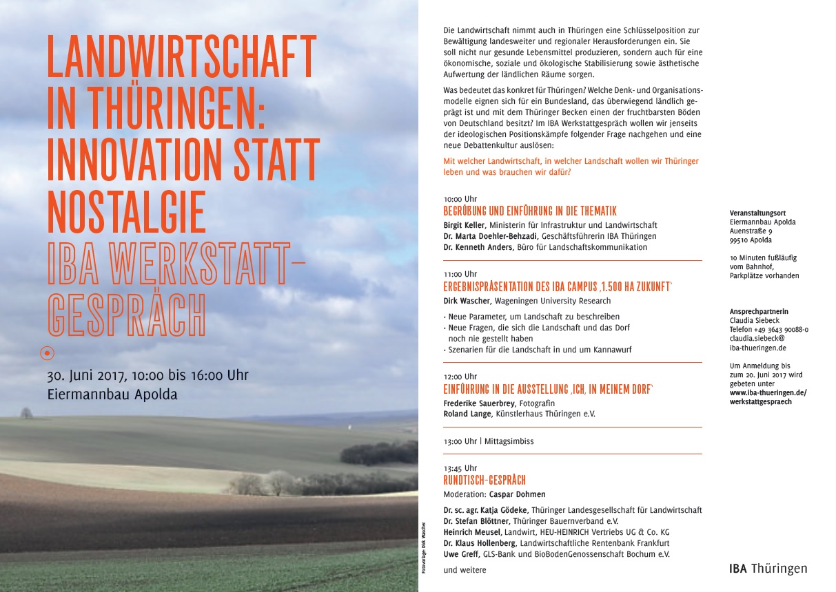 Was bedeutet das konkret für Thüringen? Welche Denk- und Organisationsmodelle eignen sich für ein Bundesland, das überwiegend ländlich geprägt ist und mit dem Thüringer Becken einen der fruchtbarsten Böden von Deutschland besitzt? Im IBA Werkstattgespräch wollen wir jenseits der ideologischen Positionskämpfe folgender Frage nachgehen und eine neue Debattenkultur auslösen: