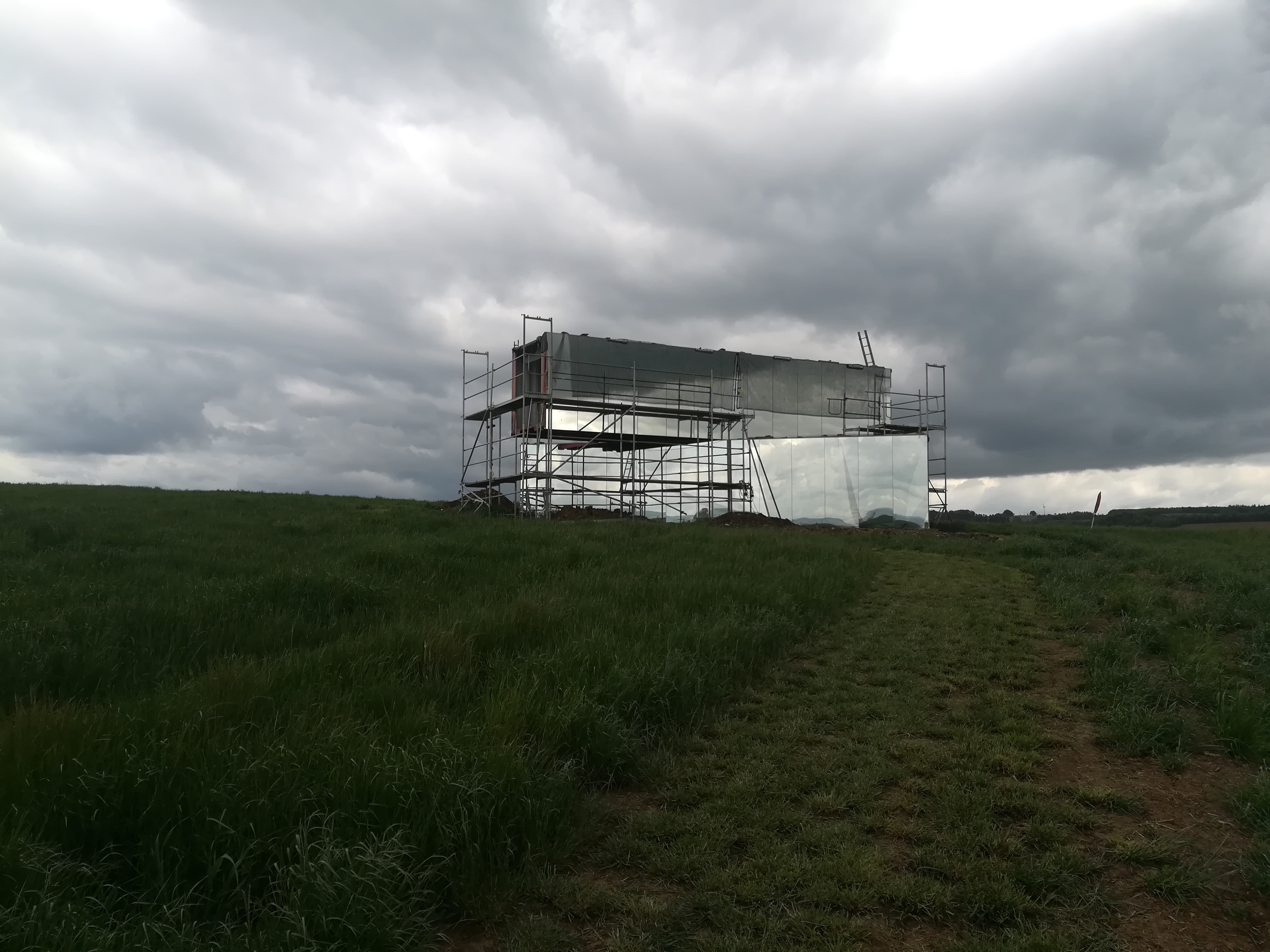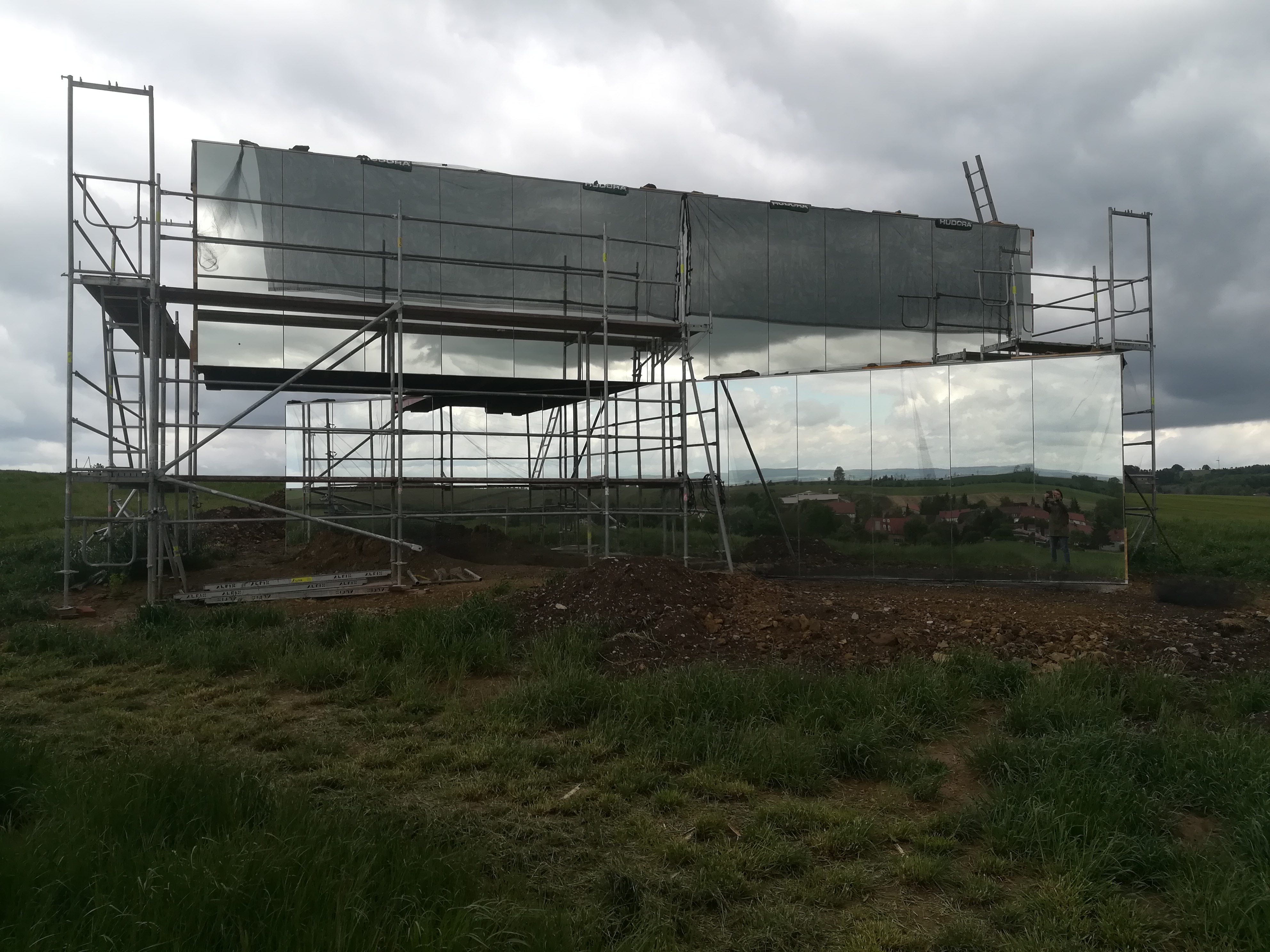 In den letzten Tagen wurden die Spiegel an der Südseite montiert und eine Treppe als Zugang an der Nordseite angebaut. Schon jetzt bietet die Ansicht völlig neue Perspektiven auf die Landschaft.
