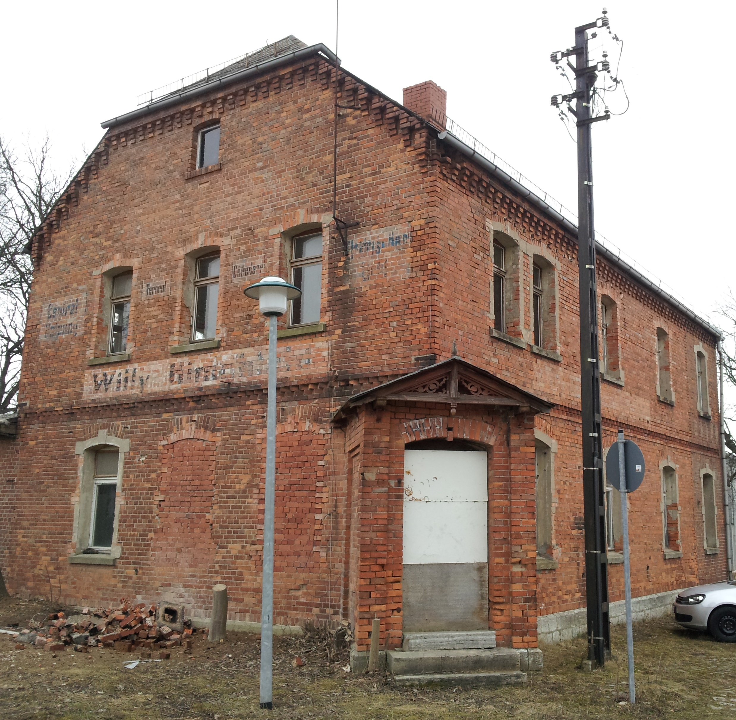 Die Regionale Aktionsgruppe (RAG) Sömmerda-Erfurt unterstütze die Sanierung der Fassade des Backsteingebäudes 2013 mit LEADER-Fördermitteln. Das LEADER-Management begleitete die Vorhabenträger während der Antragstellung und Umsetzung. Während der Sanierung der Fassade mussten zahlreiche Steine ausgetauscht, Sockel teilweise neu geputzt werden. Die Fensterleibungen wurden originalgetreu angeputzt, die Solbänke konnten größtenteils erhalten werden. Zwei zwischenzeitlich zugemauerte Fenster wurden geöffnet.