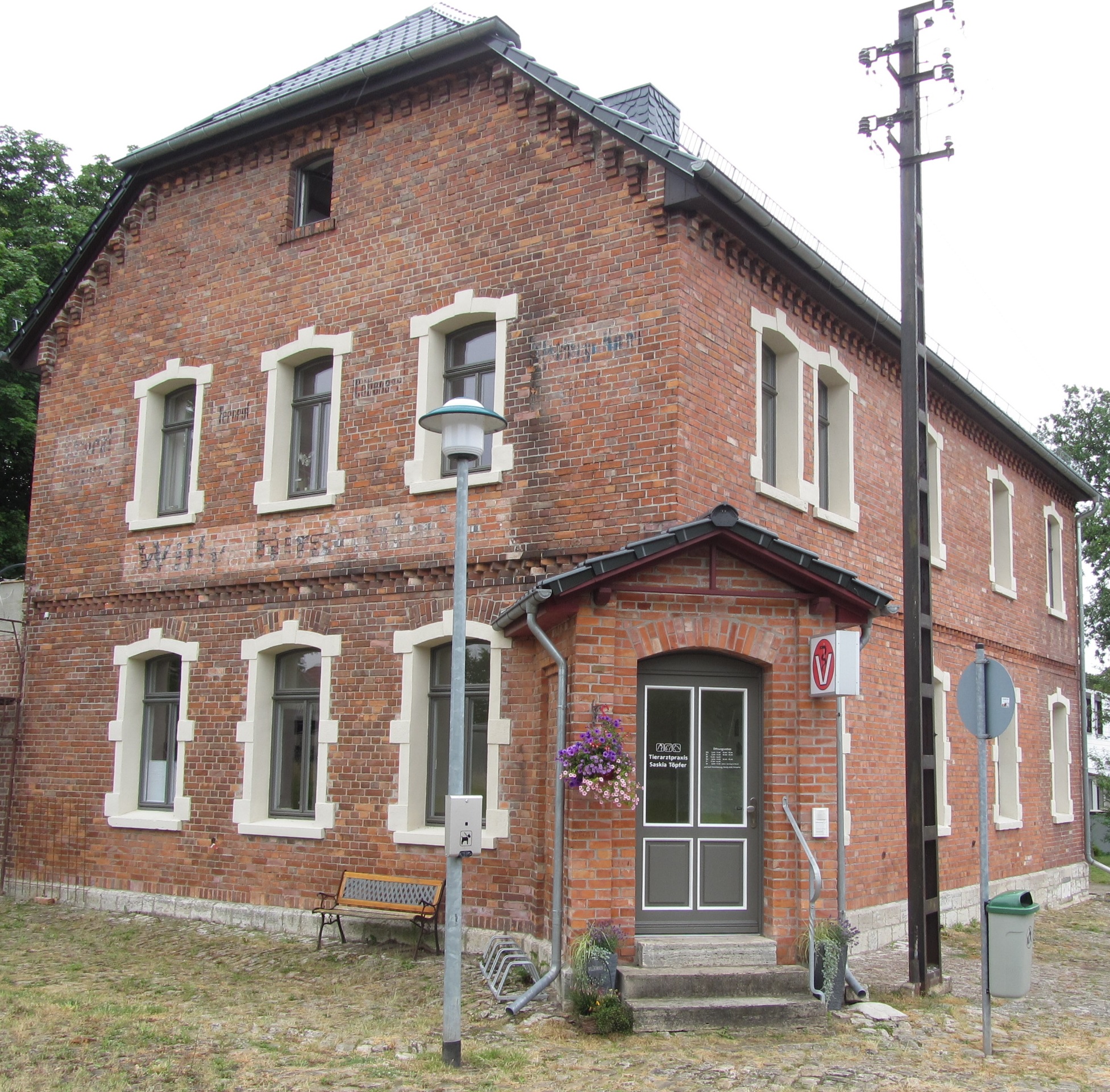 Frau Töpfer kommt ursprünglich aus der Region und hatte schon immer den Wunsch, nach ihrer Ausbildung zum Arbeiten und Leben zurückzukehren. Das charakteristische Gebäude der ehemaligen Bahnhofsgaststätte in Großneuhausen mit insgesamt 360 m² Wohnfläche und einer guten infrastrukturellen Anbindung bot dafür alle Voraussetzungen. 2011 erfolgte der Kauf des Gebäudes. Seit 2014 praktiziert Frau Töpfer nun als niedergelassene Tierärztin im Gebäude.